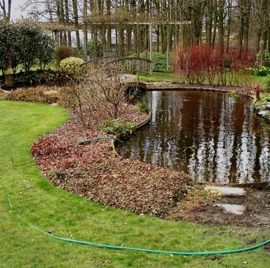 1. Ronde, vloeiende nieuwe plantdelen in het gras leg ik uit met een tuinslang